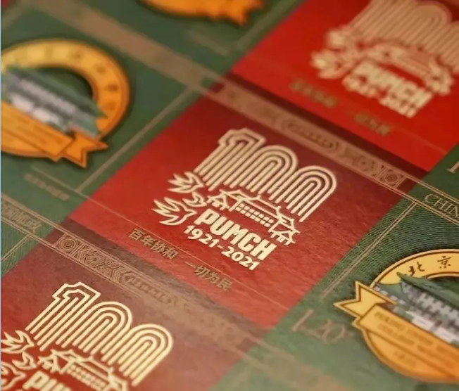 邮票主票使用印金工艺,使三维化的院徽图案更具金属光泽与立体效果。采用荧光特种印刷了红心彩带图形,与“北京协和医院”标题字形成整体,凸显协和医院“一切为了患者”和“大爱成就大医”的办院理念。附票创新性地使用了大面积烫金工艺,展现百年院庆标志。这也是中国邮政首次在个性化邮票中采用烫印工艺。